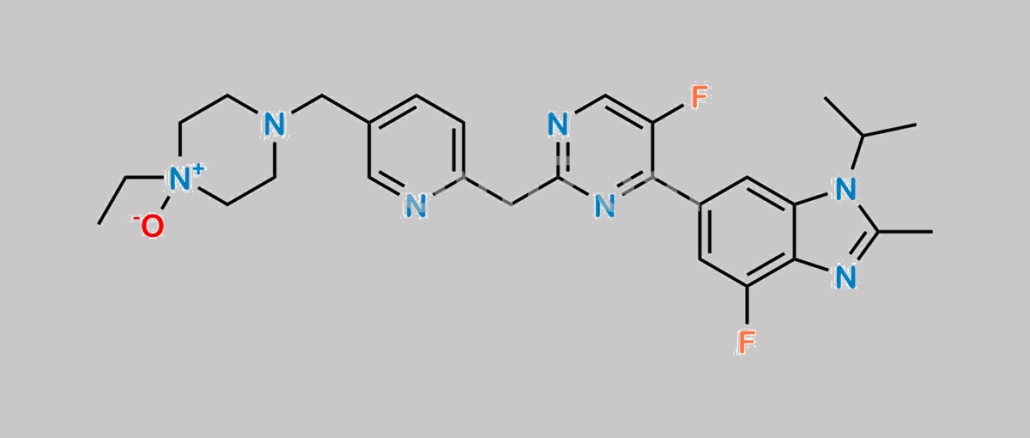 Abemaciclib Impurity 18 is chemically 1-Ethyl-4-((6-((5-fluoro-4-(4-fluoro-1-isopropyl-2-methyl-1H-benzo[d]imidazol-6-yl)pyrimidin-2-yl)methyl)pyridin-3-yl)methyl)piperazine 1-oxide. Abemaciclib Impurity 18 is supplied with detailed characterization data compliant with regulatory guideline. Abemaciclib Impurity 18 can be used for the analytical method development, method validation (AMV), Quality Controlled (QC) application for Abbreviated New Drug Application (ANDA) or during commercial production of Abemaciclib. The product can be used as reference standards and further traceability against pharmacopeial standards (USP or EP) can be provided based on feasibility. ChemWhat products are for analytical purpose only and not for human use.