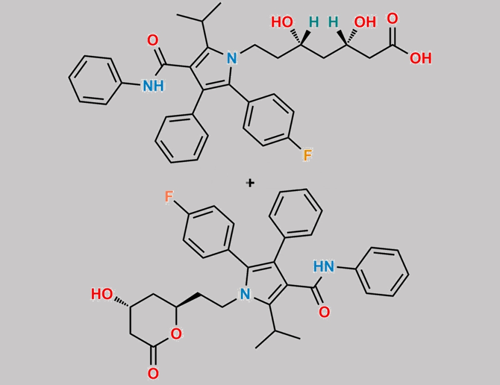 O=C(C1=C(C(C)C)N(CC[C@]([H])(O)C[C@@]([H])(CC(O)=O)O)C(C2=CC=C(F)C=C2)=C1C3=CC=CC=C3)NC4=CC=CC=C4.O=C5C[C@H](O)C[C@@H](CCN6C(C7=CC=C(F)C=C7)=C(C8=CC=CC=C8)C(C(NC9=CC=CC=C9)=O)=C6C(C)C)O5