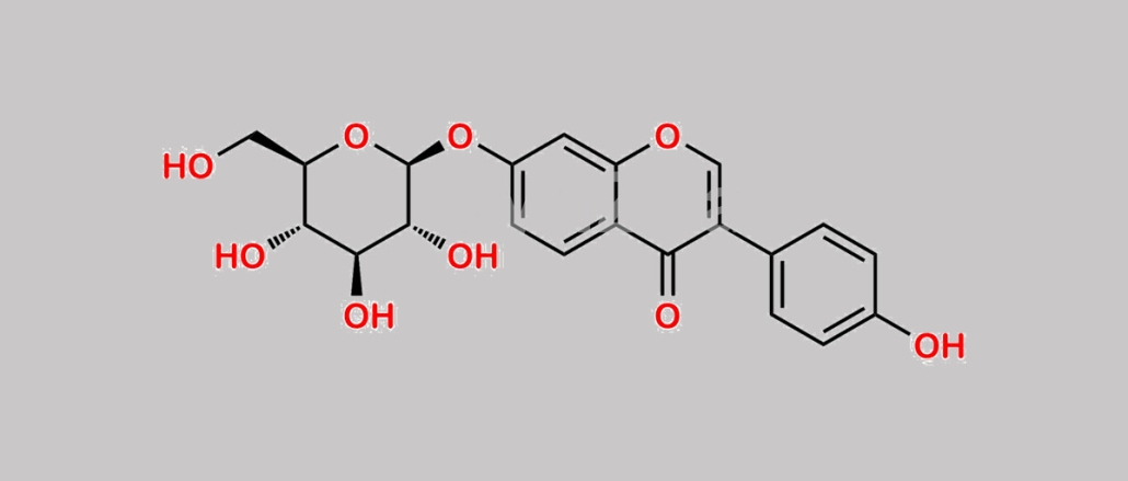 Daidzin is chemically 7-(beta-d-Glucopyranosyloxy)-3-(4-hydroxyphenyl)-4H-1-benzopyran-4-one. (as per EP). It is also known as Daidzein-7-O-glucoside. Daidzin is supplied with detailed characterization data compliant with regulatory guideline. Daidzin can be used for the analytical method development, method validation (AMV), Quality Controlled (QC) application for Abbreviated New Drug Application (ANDA) or during commercial production of Daidzin. The product can be used as reference standards and further traceability against pharmacopeial standards (USP or EP) can be provided based on feasibility. ChemWhat products are for analytical purpose only and not for human use.