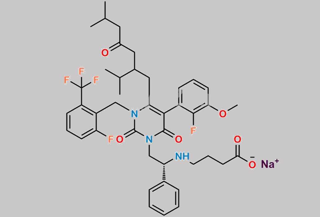 Elagolix Condensation Impurity is chemically Sodium 4-(((1R)-2-(5-(2-fluoro-3-methoxyphenyl)-3-(2-fluoro-6-(trifluoromethyl)benzyl)-4-(2-isopropyl-6-methyl-4-oxoheptyl)-2,6-dioxo-3,6-dihydropyrimidin-1(2H)-yl)-1-phenylethyl)amino)butanoate. Elagolix Condensation Impurity is supplied with detailed characterization data compliant with regulatory guideline. Elagolix Condensation Impurity can be used for the analytical method development, method validation (AMV), Quality Controlled (QC) application for Abbreviated New Drug Application (ANDA) or during commercial production of Elagolix sodium. The product can be used as reference standards and further traceability against pharmacopeial standards (USP or EP) can be provided based on feasibility. ChemWhat products are for analytical purpose only and not for human use.