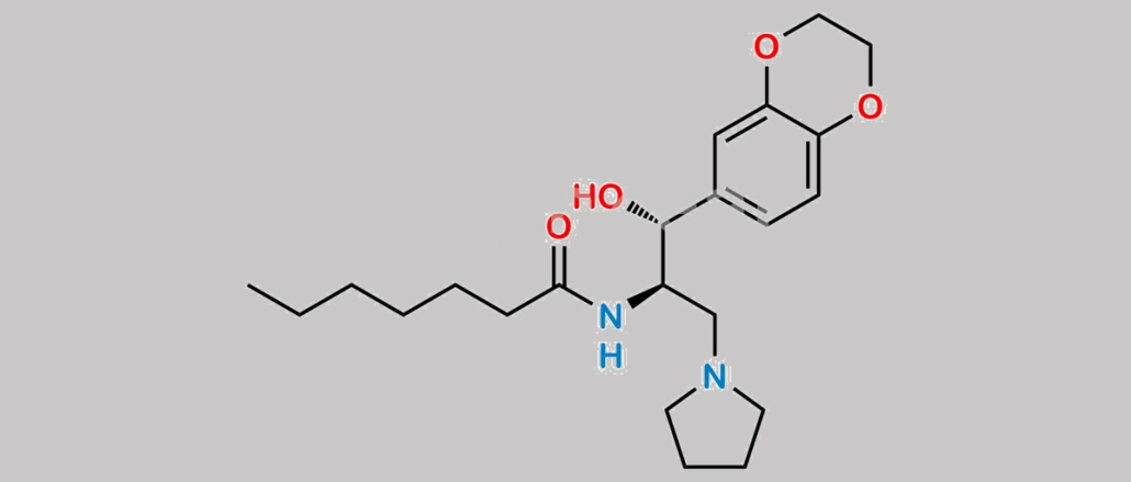 Eliglustat Heptanoic Acid is chemically N-((1R,2R)-1-(2,3-Dihydrobenzo[b][1,4]dioxin-6-yl)-1-hydroxy-3-(pyrrolidin-1-yl)propan-2-yl)heptanamide. Eliglustat Heptanoic Acid is supplied with detailed characterization data compliant with regulatory guideline. Eliglustat Heptanoic Acid can be used for the analytical method development, method validation (AMV), Quality Controlled (QC) application for Abbreviated New Drug Application (ANDA) or during commercial production of Eliglustat. The product can be used as reference standards and further traceability against pharmacopeial standards (USP or EP) can be provided based on feasibility. ChemWhat products are for analytical purpose only and not for human use.