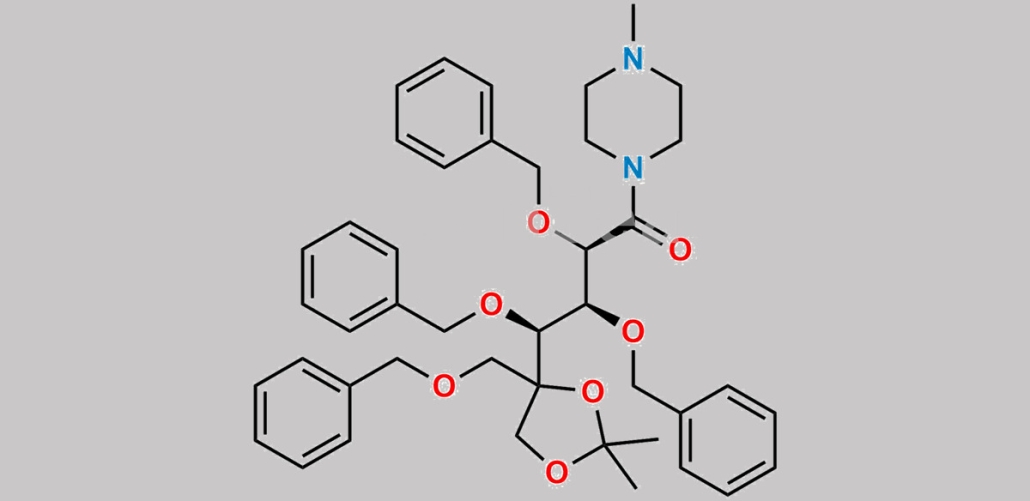 Ertugliflozin Impurity 5 is chemically (2R,3S,4S)-2,3,4-Tris(benzyloxy)-4-(4-((benzyloxy)methyl)-2,2-dimethyl-1,3-dioxolan-4-yl)-1-(4-methylpiperazin-1-yl)butan-1-one. Ertugliflozin Impurity 5 is supplied with detailed characterization data compliant with regulatory guideline. Ertugliflozin Impurity 5 can be used for the analytical method development, method validation (AMV), Quality Controlled (QC) application for Abbreviated New Drug Application (ANDA) or during commercial production of Ertugliflozin. The product can be used as reference standards and further traceability against pharmacopeial standards (USP or EP) can be provided based on feasibility. ChemWhat products are for analytical purpose only and not for human use.