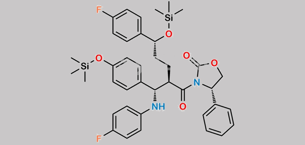 Ezetimibe Impurity 25 is chemically (S)-3-((2R,5R)-5-(4-Fluorophenyl)-2-((S)-((4-fluorophenyl)amino)(4-((trimethylsilyl)oxy)phenyl)methyl)-5-((trimethylsilyl)oxy)pentanoyl)-4-phenyloxazolidin-2-one. Ezetimibe Impurity 25 is supplied with detailed characterization data compliant with regulatory guideline. Ezetimibe Impurity 25 can be used for the analytical method development, method validation (AMV), Quality Controlled (QC) application for Abbreviated New Drug Application (ANDA) or during commercial production of Ezetimibe. The product can be used as reference standards and further traceability against pharmacopeial standards (USP or EP) can be provided based on feasibility. ChemWhat products are for analytical purpose only and not for human use.