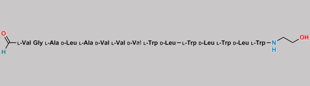 O=C([H])N[C@@H](C(C)C)C(NCC(N[C@@H](C)C(N[C@H](CC(C)C)C(N[C@@H](C)C(N[C@H](C(C)C)C(N[C@@H](C(C)C)C(N[C@H](C(C)C)C(N[C@@H](CC1=CNC2=C1C=CC=C2)C(N[C@H](CC(C)C)C(N[C@@H](CC3=CNC4=C3C=CC=C4)C(N[C@H](CC(C)C)C(N[C@@H](CC5=CNC6=C5C=CC=C6)C(N[C@H](CC(C)C)C(N[C@@H](CC7=CNC8=C7C=CC=C8)C(NCCO)=O)=O)=O)=O)=O)=O)=O)=O)=O)=O)=O)=O)=O)=O)=O