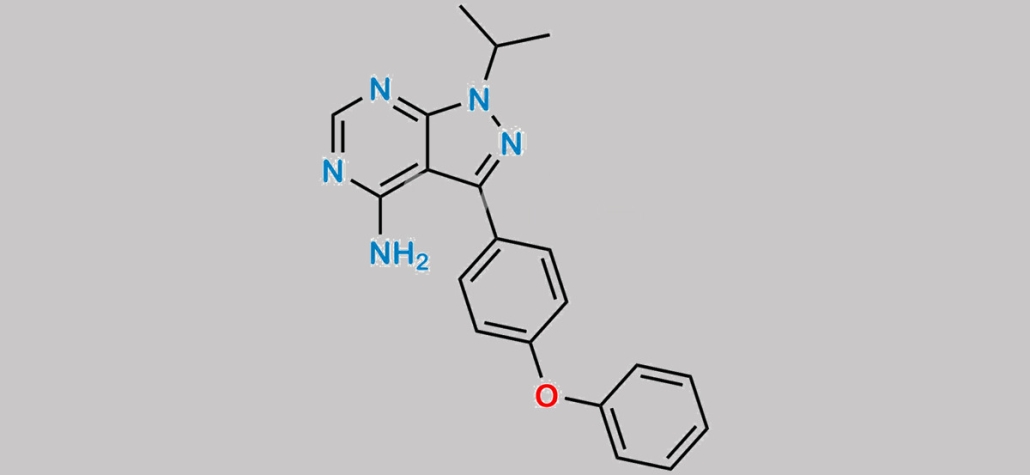 Ibrutinib Impurity 40 is chemically 1-Isopropyl-3-(4-phenoxyphenyl)-1H-pyrazolo[3,4-d]pyrimidin-4-amine. Ibrutinib Impurity 40 is supplied with detailed characterization data compliant with regulatory guideline. Ibrutinib Impurity 40 can be used for the analytical method development, method validation (AMV), Quality Controlled (QC) application for Abbreviated New Drug Application (ANDA) or during commercial production of Ibrutinib. The product can be used as reference standards and further traceability against pharmacopeial standards (USP or EP) can be provided based on feasibility. ChemWhat products are for analytical purpose only and not for human use.