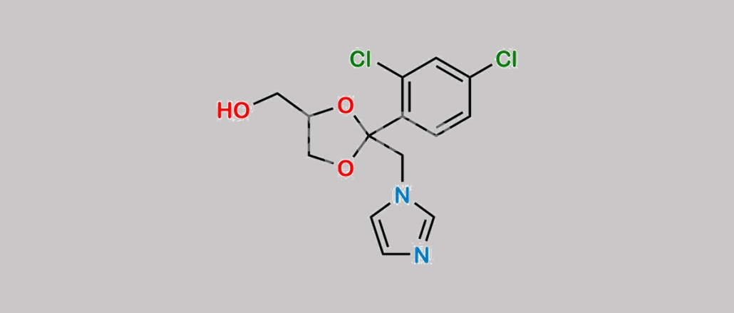 Ketoconazole Impurity 12 is chemically (2-((1H-Imidazol-1-yl)methyl)-2-(2,4-dichlorophenyl)-1,3-dioxolan-4-yl)methanol. Ketoconazole Impurity 12 is supplied with detailed characterization data compliant with regulatory guideline. Ketoconazole Impurity 12 can be used for the analytical method development, method validation (AMV), Quality Controlled (QC) application for Abbreviated New Drug Application (ANDA) or during commercial production of Ketoconazole. The product can be used as reference standards and further traceability against pharmacopeial standards (USP or EP) can be provided based on feasibility. ChemWhat products are for analytical purpose only and not for human use.