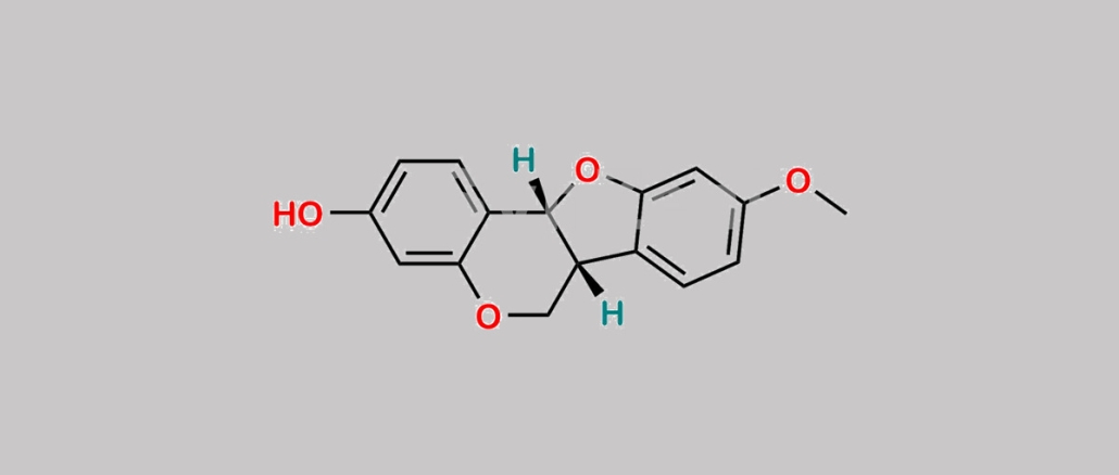 Medicarpin is chemically (6aR,11aR)-9-methoxy-6a,11a-dihydro-6H-benzofuro[3,2-c]chromen-3-ol. Medicarpin is supplied with detailed characterization data compliant with regulatory guideline. Medicarpin can be used for the analytical method development, method validation (AMV), Quality Controlled (QC) application for Abbreviated New Drug Application (ANDA) or during commercial production of Medicarpin. The product can be used as reference standards and further traceability against pharmacopeial standards (USP or EP) can be provided based on feasibility. ChemWhat products are for analytical purpose only and not for human use.