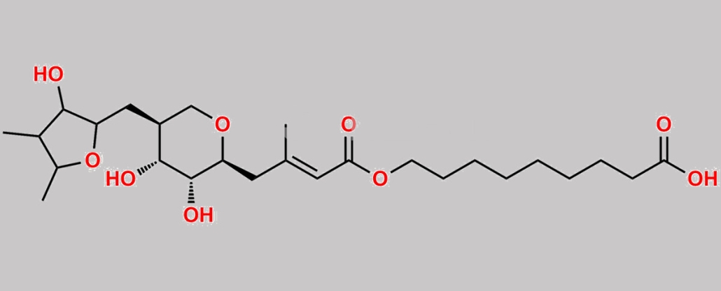 Mupirocin USP impurity 4 (RRT 1.36) is chemically 9-(((E)-4-((2S,3R,4R,5S)-3,4-dihydroxy-5-((3-hydroxy-4,5-dimethyltetrahydrofuran-2-yl)methyl)tetrahydro-2H-pyran-2-yl)-3-methylbut-2-enoyl)oxy)nonanoic acid. Mupirocin USP impurity 4 (RRT 1.36) is supplied with detailed characterization data compliant with regulatory guideline. Mupirocin USP impurity 4 (RRT 1.36) can be used for the analytical method development, method validation (AMV), Quality Controlled (QC) application for Abbreviated New Drug Application (ANDA) or during commercial production of Mupirocin. The product can be used as reference standards and further traceability against pharmacopeial standards (USP or EP) can be provided based on feasibility. ChemWhat products are for analytical purpose only and not for human use.