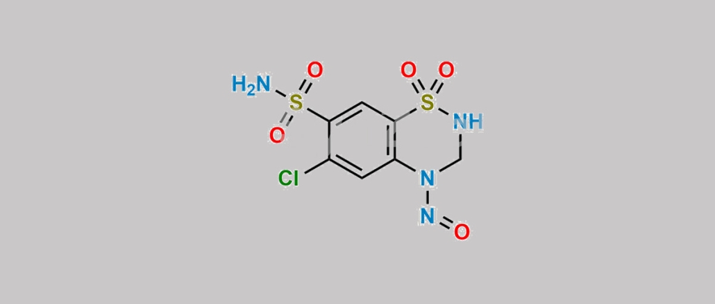 N-Nitroso Hydrochlorothiazide is chemically 6-Chloro-4-nitroso-3,4-dihydro-2H-benzo[e][1,2,4]thiadiazine-7-sulfonamide 1,1-dioxide. It is also known as 4-Nitroso Hydrochlorothiazide. N-Nitroso Hydrochlorothiazide is supplied with detailed characterization data compliant with regulatory guideline. N-Nitroso Hydrochlorothiazide can be used for the analytical method development, method validation (AMV), Quality Controlled (QC) application for Abbreviated New Drug Application (ANDA) or during commercial production of Hydrochlorothiazide. The product can be used as reference standards and further traceability against pharmacopeial standards (USP or EP) can be provided based on feasibility. ChemWhat products are for analytical purpose only and not for human use.