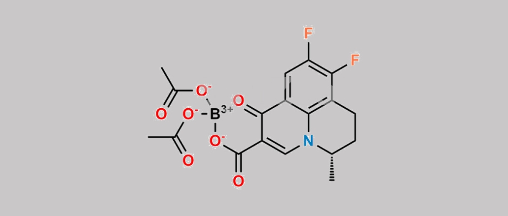 CC([O-][B+3]([O]=C1C2=CC(F)=C(F)C(CC3)=C2N([C@H]3C)C=C1C4=O)([O-]4)[O-]C(C)=O)=O