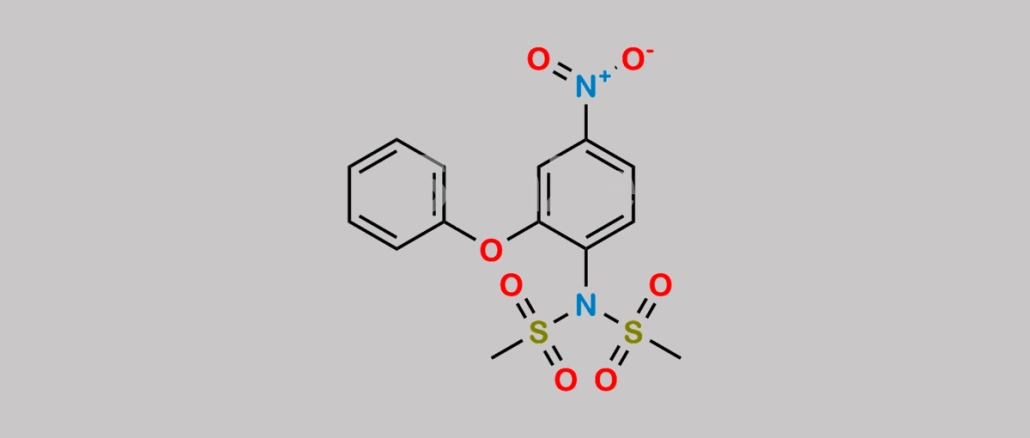 Nimesulide EP Impurity F is chemically N-(methylsulfonyl)-N-(4-nitro-2-phenoxyphenyl)methanesulfonamide. Nimesulide EP Impurity F is supplied with detailed characterization data compliant with regulatory guideline. Nimesulide EP Impurity F can be used for the analytical method development, method validation (AMV), Quality Controlled (QC) application for Abbreviated New Drug Application (ANDA) or during commercial production of Nimesulide. The product can be used as reference standards and further traceability against pharmacopeial standards (USP or EP) can be provided based on feasibility. ChemWhat products are for analytical purpose only and not for human use.