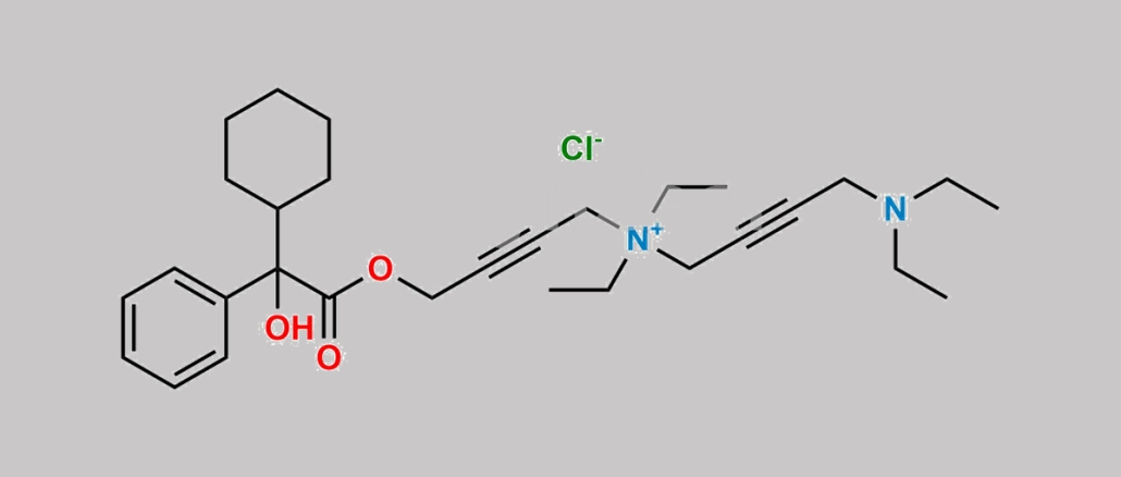 CC[N+](CC#CCN(CC)CC)(CC#CCOC(C(O)(C1CCCCC1)C2=CC=CC=C2)=O)CC.[Cl-]