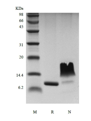 We recommend that this vial be briefly centrifuged prior to opening to bring the contents to the bottom. Reconstitute in sterile distilled water or aqueous buffer containing 0.1 % BSA to a concentration of 0.1-1.0 mg/mL. Stock solutions should be apportioned into working aliquots and stored at ≤ -20 °C. Further dilutions should be made in appropriate buffered solutions.