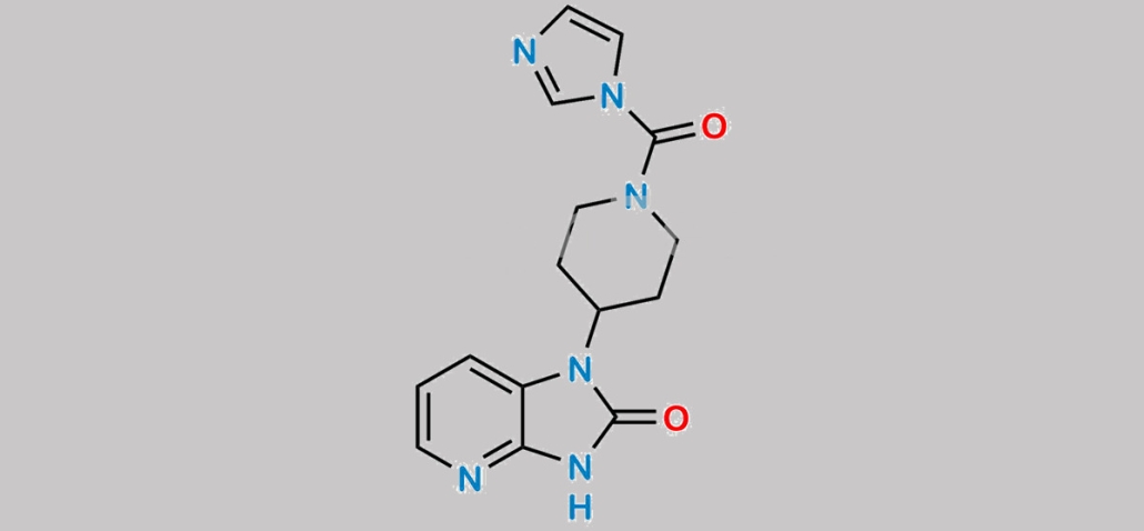 Rimegepant Impurity 9 is chemically 1-(1-(1H-Imidazole-1-carbonyl)piperidin-4-yl)-1,3-dihydro-2H-imidazo[4,5-b]pyridin-2-one. Rimegepant Impurity 9 is supplied with detailed characterization data compliant with regulatory guideline. Rimegepant Impurity 9 can be used for the analytical method development, method validation (AMV), Quality Controlled (QC) application for Abbreviated New Drug Application (ANDA) or during commercial production of Rimegepant. The product can be used as reference standards and further traceability against pharmacopeial standards (USP or EP) can be provided based on feasibility. ChemWhat products are for analytical purpose only and not for human use.