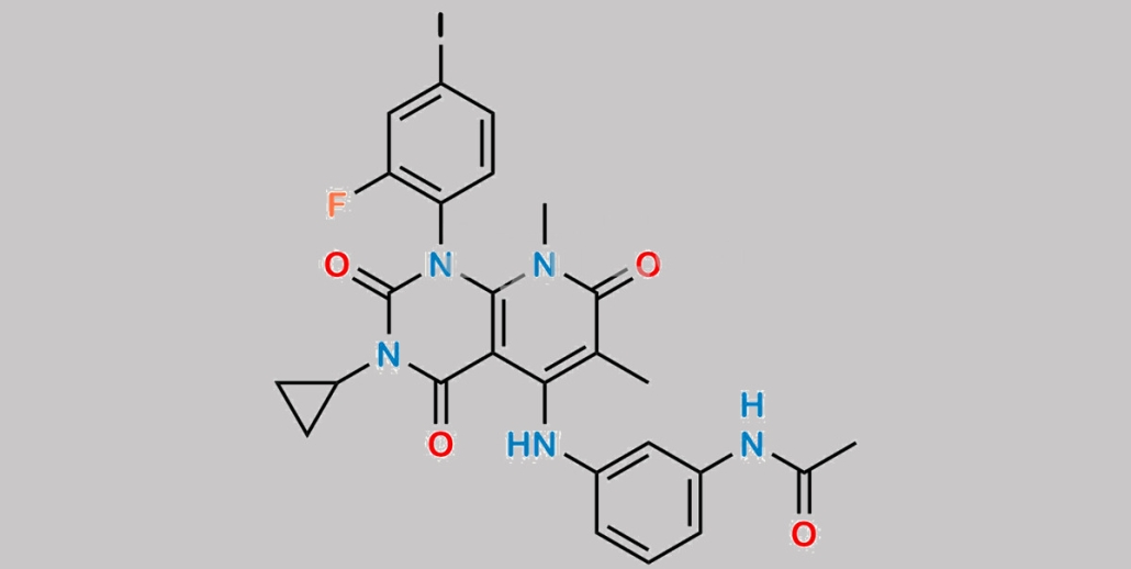 Trametinib Impurity 2 is chemically N-(3-((3-Cyclopropyl-1-(2-fluoro-4-iodophenyl)-6,8-dimethyl-2,4,7-trioxo-1,2,3,4,7,8-hexahydropyrido[2,3-d]pyrimidin-5-yl)amino)phenyl)acetamide. Trametinib Impurity 2 is supplied with detailed characterization data compliant with regulatory guideline. Trametinib Impurity 2 can be used for the analytical method development, method validation (AMV), Quality Controlled (QC) application for Abbreviated New Drug Application (ANDA) or during commercial production of Trametinib. The product can be used as reference standards and further traceability against pharmacopeial standards (USP or EP) can be provided based on feasibility. ChemWhat products are for analytical purpose only and not for human use.