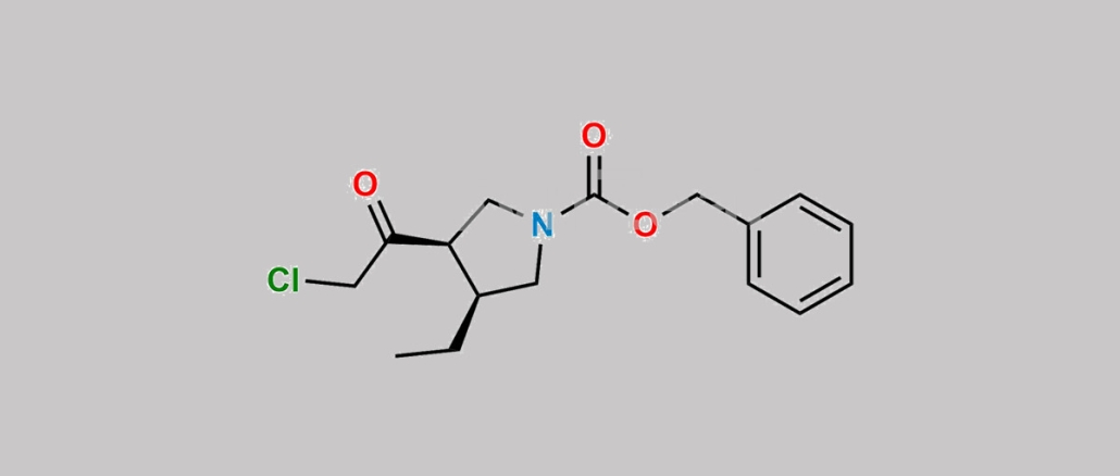 Upadacitinib Impurity 8 is chemically Benzyl (3R,4S)-3-(2-chloroacetyl)-4-ethylpyrrolidine-1-carboxylate. Upadacitinib Impurity 8 is supplied with detailed characterization data compliant with regulatory guideline. Upadacitinib Impurity 8 can be used for the analytical method development, method validation (AMV), Quality Controlled (QC) application for Abbreviated New Drug Application (ANDA) or during commercial production of Upadacitinib. The product can be used as reference standards and further traceability against pharmacopeial standards (USP or EP) can be provided based on feasibility. ChemWhat products are for analytical purpose only and not for human use.